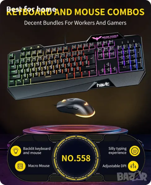 Геймърска клавиатура и мишка RGB Magic Eagle от Havit