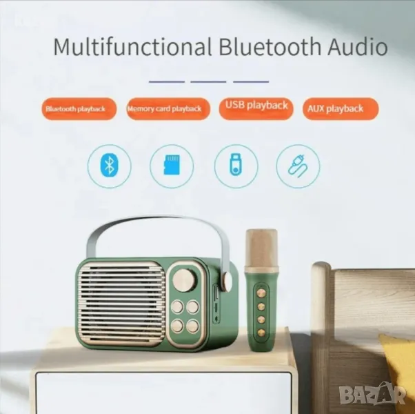 Bluetooth преносим високоговорител,караоке микрофон