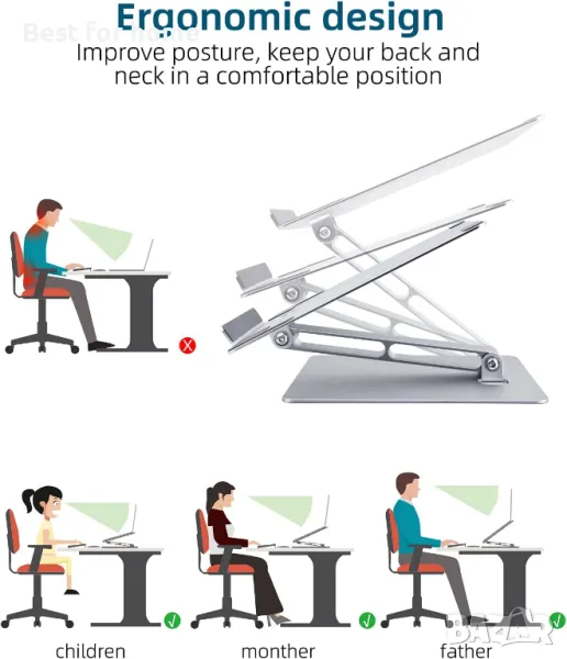 Имате нужда от стойка за лаптоп, за да коригирате неправилната поза на седене, което намалява болката във врата и раменете, регулируема височина и ъгъл, най-добра ергономичност за минимизиране на умората на врата,използвайте лаптопа си по най-добрия начин!!