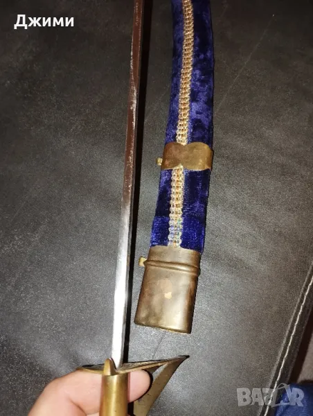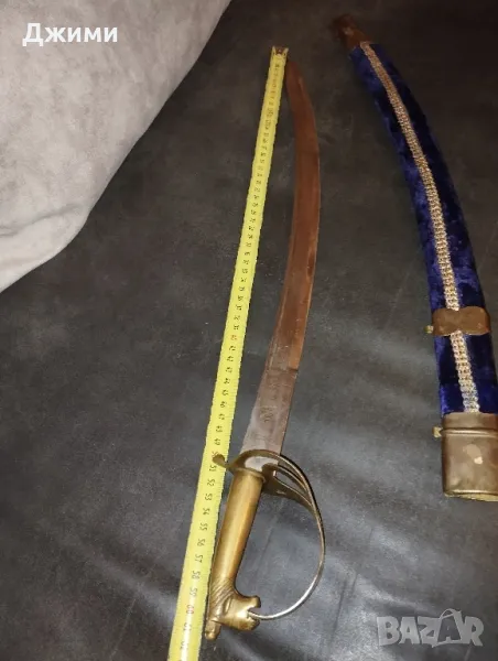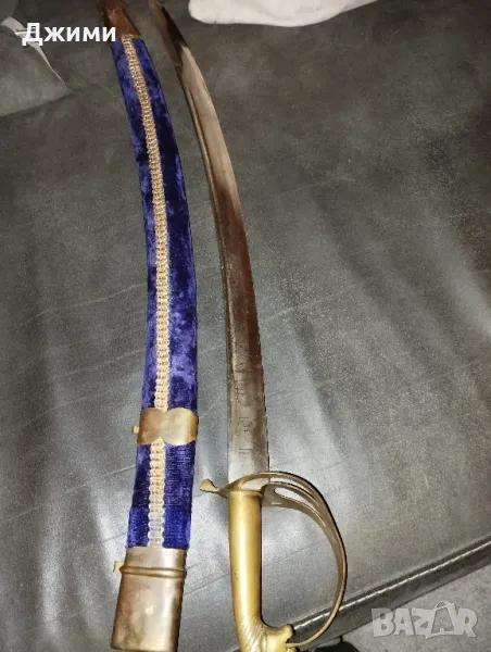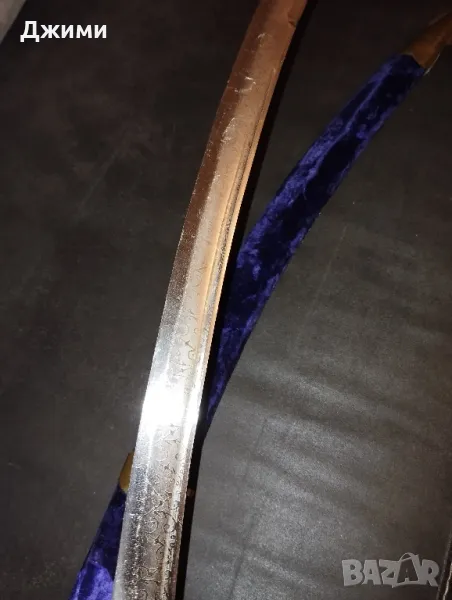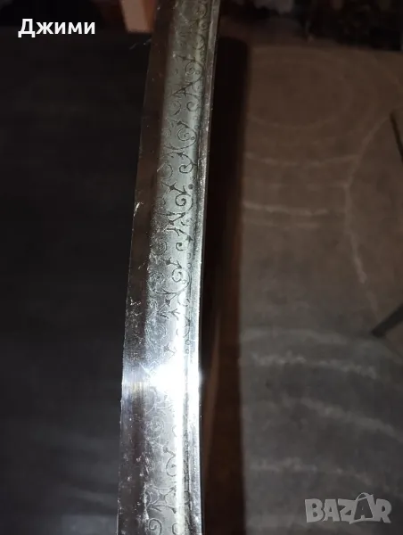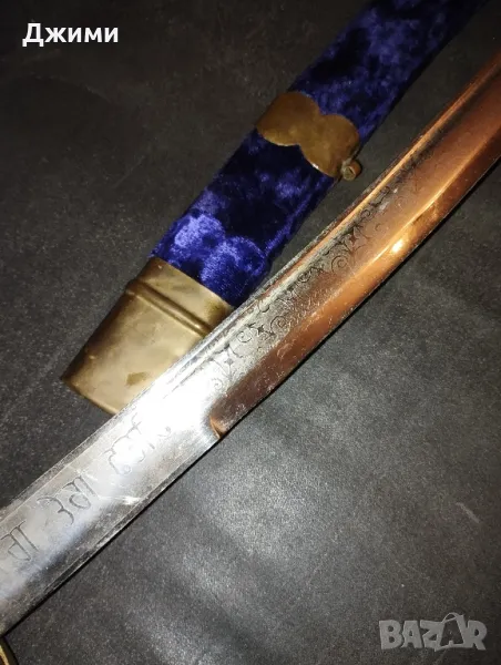 сабията е офицерска парадна без забележка без ръжда гравирано незаточвано на шмиргел острие сабията е 62 см дължина вътре във кънията е 70 см