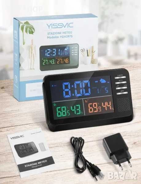 Метеорологична станция YISSVIC с външен сензор, LCD дисплей, прогноза за времето, температура/влажност/будилник, за дома/офиса