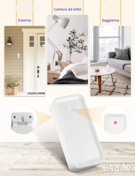 Дисплей за температура и влажност: когато сензорът работи, той може да открие вътрешна температура (0℃-50℃) и външна температура (-20℃-50℃). Грешката на откриване е 0,1 °C. Той може също така да открие вътрешна влажност (20% -95%) и външна влажност (20% -95%) с грешка на откриване от 1%. Цикълът на откриване на температура и влажност е 30 секунди. Мерната единица за температура може да се превключва между ℃ / ℉