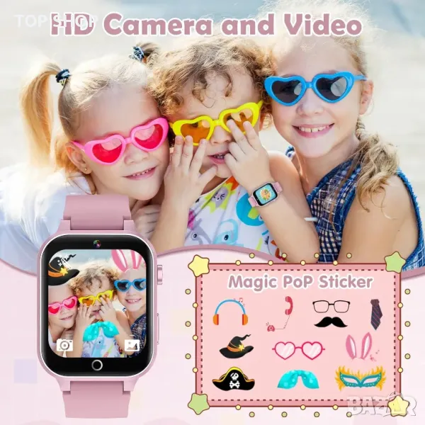 Детски смарт часовник UUP pinkДетски часовник с игри, с 26 пъзел игри, сензорен екран, HD камера, будилник, играчки за възраст 4-12 години. Подарък за рожден ден за момчета и момичета (розово)