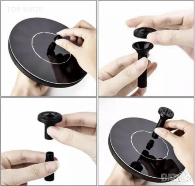 Соларният фонтан включва помпа, състояща се от високоефективен слънчев панел и нова безчеткова помпа.
