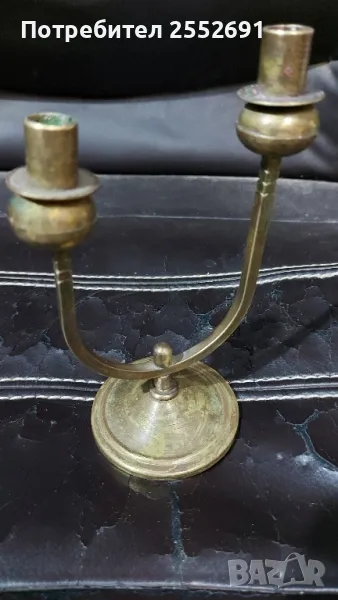 Старинен бронзов/месингов/ настолен свещник- двойка . Височина- 15см. Ширина- 10см. Диаметър за свещ- 13мм.Диаметър на основата- 7см.