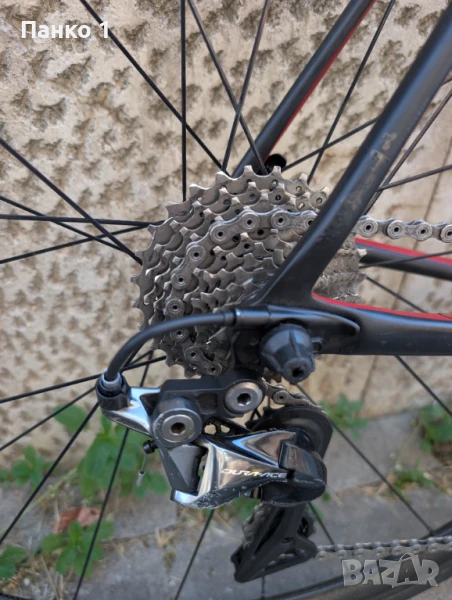 Фреймсета е най-високия клас на Cannondale - Hi-Mod модификацията на модела Super Six Evo, произведено 2019 година. Рамката се намира в хубаво състояние, забележките са свързани с дребни драскотини и олющвания по боята, но никакви пукнатини/ремонти или друго подобно. Размера на рамката е 58см, или иначе казано L размер. Монтажа е Dura Ace 9100 - 11 скоростен механичен. Курбелите са Cannondale Hollowgram Si 50/34 със 175мм рамена. Челюстите са ултра леки Ciamillo Gravity TI. Броните за жила са JAGWIRE ELITE за допълнително намяляне на теглото. Каплите са тубуларни Zipp 202 и 11-28 касета, като каплите са в перфектно състояние с чисто нови лагери(предната главина е с керамични лагери). Лапата е Cannondale C2 110мм и карбоново АЕРО кормило широко 38см. Седалкта е SQ Lab 612.