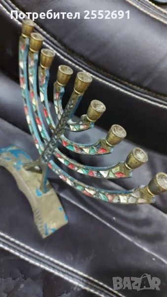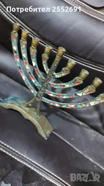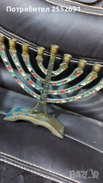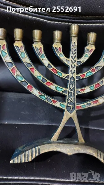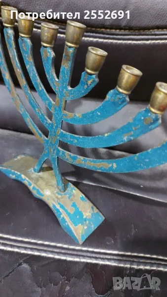 Старинен бронзов еврейски свещник. Височина- 16,5см. Ширина- 20см. Наличие на надпис- MADE IN ISRAEL.
