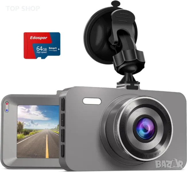 Високоскоростна камера Edospor Dash Cam за автомобили + 64G SD карта