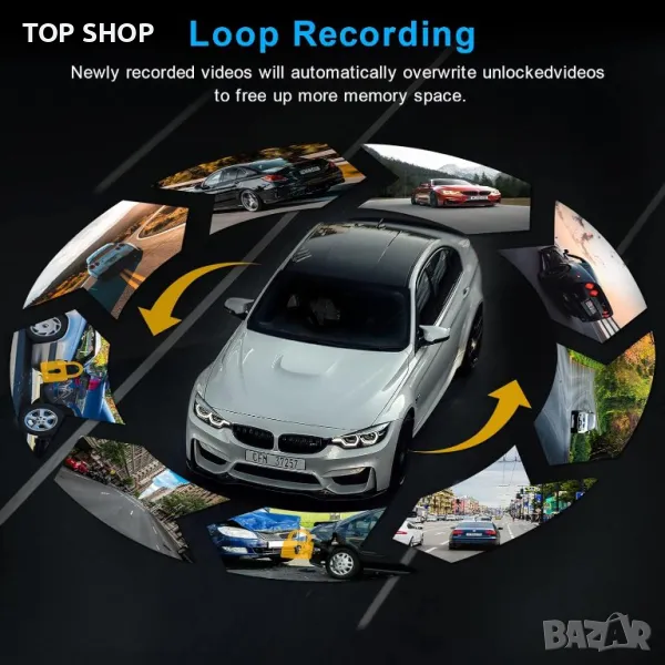 Нашата видеорегистратор има цикличен запис, така че по-старите записи се изтриват, за да се освободи място за нови записи. Непрекъснато циклично записване за минимизиране на отпечатъка при съхранение. Но заключеното видео няма да бъде покрито. Предоставяме ви SD карта с голям капацитет от 64 GB, която обикновено може да записва до 3 седмици наведнъж.