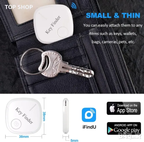 4. Напомняне против изгубване и дистанционно управление за селфи: Работете като локатор на портфейл, проследяване на домашни любимци, напомняне за ключ или малък предмет против изгубване, перфектни подаръци за вашия партньор, възрастни, деца, домашни любимци. Дори работи като дистанционно управление с един ключ за правене на снимки.