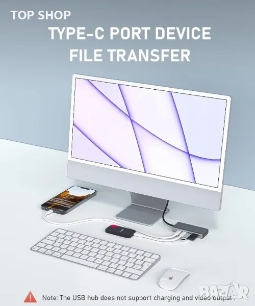 Моля, обърнете внимание: USB C HUB поддържа само предаване на данни, без зареждане, видео предаване и други функции.