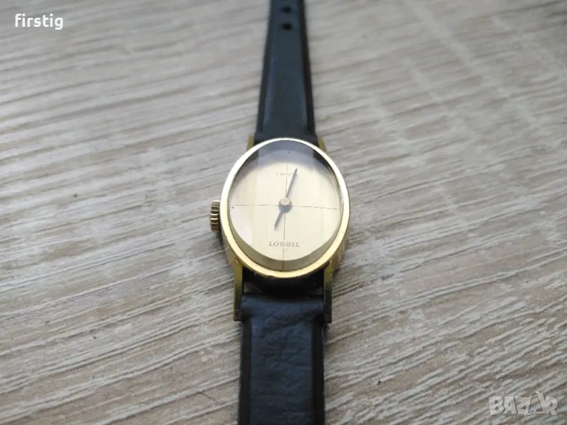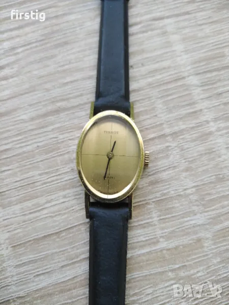 Дамски Механичен Часовник Тисо Tissot Sari в отлично работно състояние. Позлатена каса с овална форма, оригинална коронка, отличен циферблат, кожена кайшка.