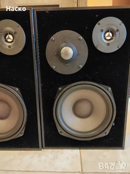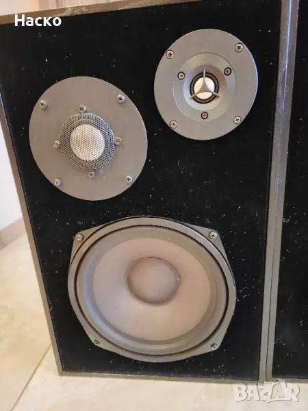 Масивни тонколони с качествени говорители.Имат си и метални решетки.Високите и средата са с Алуминиеви куполи на Vifa.Басовите говорители са 8 инча с гумена гофра на Westra.100вата rms.Размери 44/28/23см.Тегло около 20 кг двете.