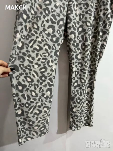 Макси еластично марково поларено долнище с висока широка ластична талия и джобове в модерен леопардов десен /аутлет/- много меко, топло, еластично и комфортно