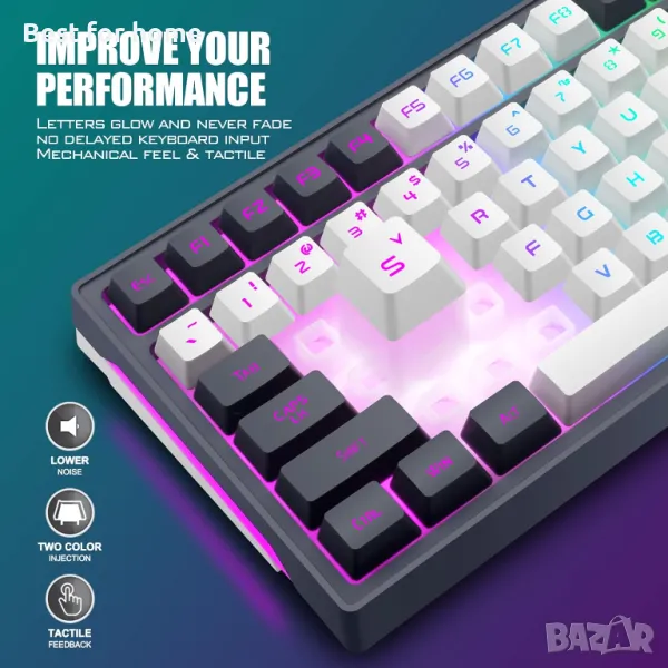 【Механично усещане】Усещане, подобно на механична клавиатура Може да се справи дори с най-ожесточените битки с лекота, като издава мек звук с всяко натискане на клавиш, много по-тих от шумните механични