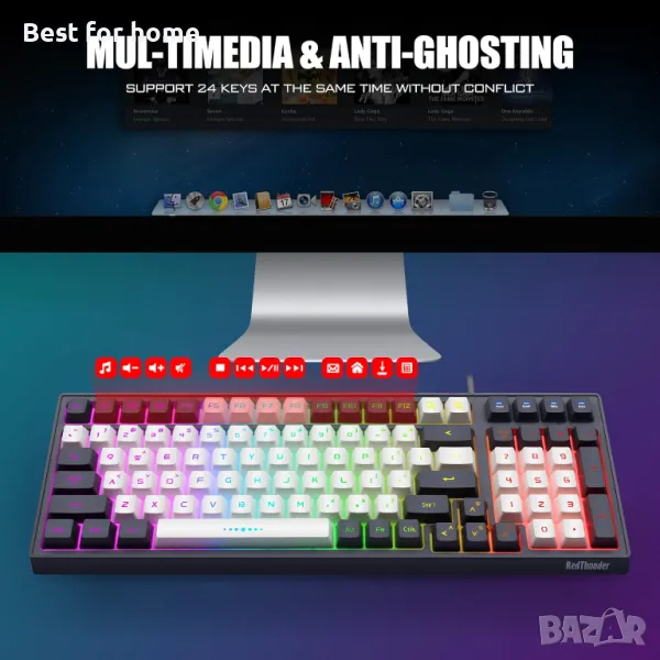 【Съвместимост и качество】Игровата клавиатура K96 RGB е широко съвместима с Windows 10, Windows 8, Windows 7, Windows XP, Windows VISTA, Mac OS и други системи. Тестван при 50 милиона натискания на клавиши, за да се гарантира невероятна издръжливост, безпроблемно писане и игри, всеки продукт от RedThunder