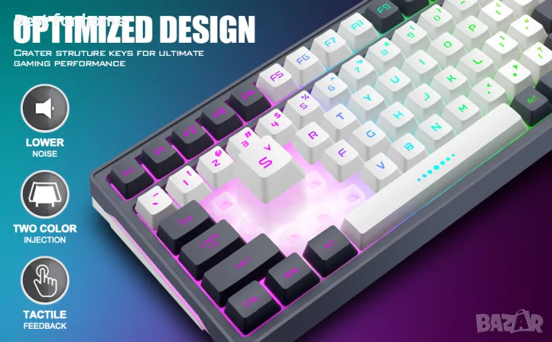 Регулируемите скоби и научният стъпаловиден дизайн на клавишите осигуряват максимален комфорт, поддържат ръцете в най-естествено състояние и намаляват умората на ръцете след продължителна употреба. Предназначен е за геймъри, офиси, писане.