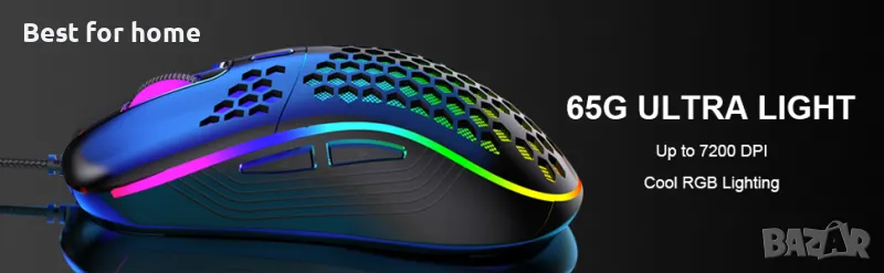 【Ултра-лека черупка от пчелна пита】Добре проектирана перфорирана черупка от пчелна пита, мишката може да тежи до 65 (+-5) грама, симетрична ергономичност, подходяща за лява или дясна ръка и различни позиции на захващане, по-гъвкава и удобна и няма умора.