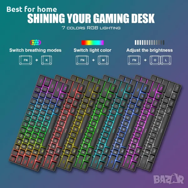 【Светлива клавиатура】Разнообразие от светли цветове и светлинни режими, от които да избирате, променливо дишане или постоянен режим на осветяване. Може да бъде страхотно за игра през нощта дори без светлина. Можете също така да регулирате яркостта и скоростта на дишане на подсветката според вашите предпочитания.
