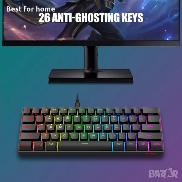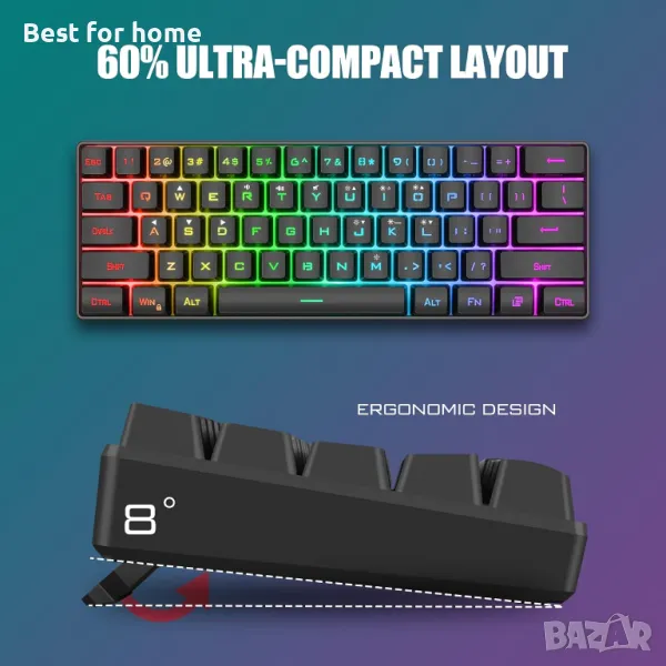 11,5 X 3,9 инча мини компактен размер, можете да използвате нашата клавиатура с 60% механично усещане у дома, във фирмата и по време на пътуване, защото нейният размер е много удобен за носене и използване със стабилна.