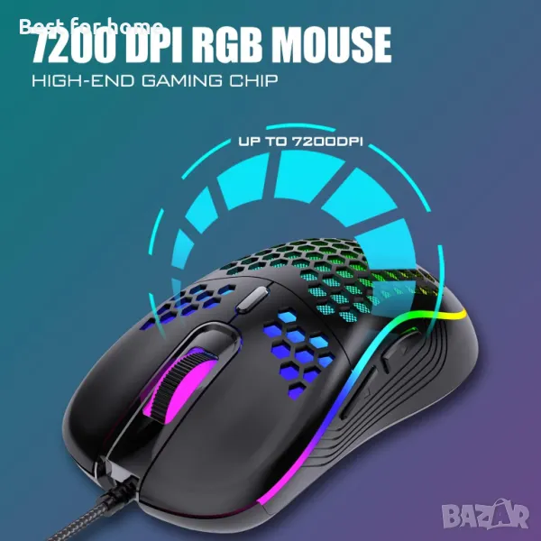 Професионалната мишка за игри използва оптичен сензор със 7200 DPI, скорост на сканиране от 12000 FPS, 40G ускорение, скорост на проследяване до 400 IPS.