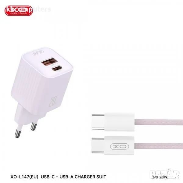 Зарядно/Адаптер 220V / XO-L147 20W / PD, USB QC 3.0 / + Type-C - Type-C Кабел / Лилав / Баркод : 456 → Обява 48488228