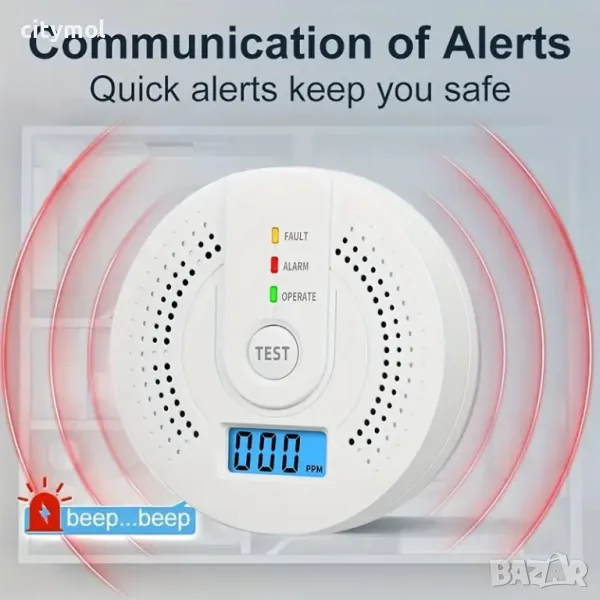 детектор за въглероден окис, оборудван с LED екран и високочувствителен електрохимичен сензор, лесни за четене цифрови стойности (ppm), точен непрекъснат мониторинг на нивата на въглероден окис и бързо можете ясно да разберете концентрация на PPM и предприемете подходящи действия, когато възникне опасност, за да осигурите пълна защита, уверете се, че сте поставили по един на всяко ниво на вашия дом и във всяка спалня.
