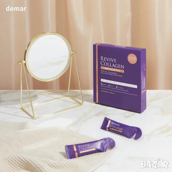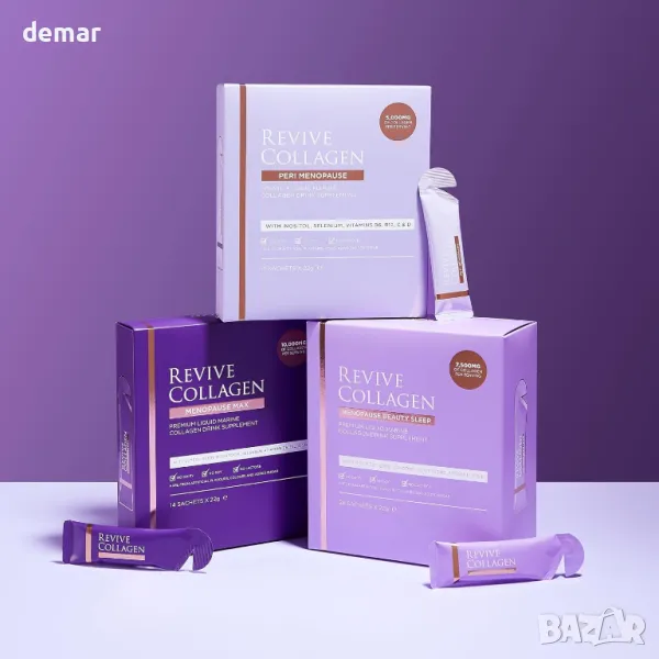 Гамата Revive Collagen Premium Menopause предлага хидролизирана течна напитка с морски колаген, предназначена да поддържа жените по време на менопаузата. Снабден с морски колаген, той насърчава здравето на кожата, хидратацията и еластичността, като същевременно се справя с хормоналните промени. Тази лесна за употреба ежедневна добавка има за цел да подобри цялостното благосъстояние, насочена към често срещани проблеми при менопаузата като сухота на кожата и жизненост.
