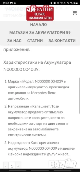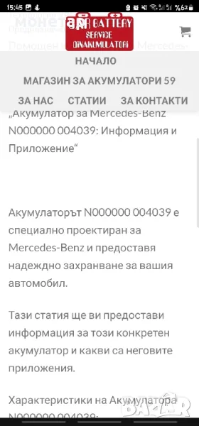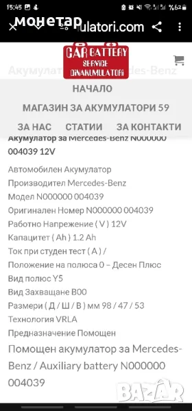 Акумулатор за Mercedes-Benz N000000 004039 → Обява 48489769