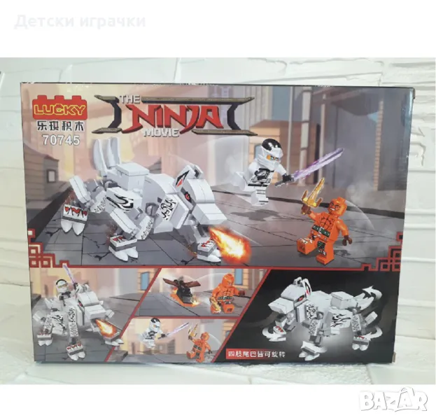 Популярна серия детски конструктори с нинджи. Съдържа 2 фигурки и блокчета за сглобяване. Впечатляващото при този модел е наличието на светещ елемент, който придава на завършената фигура още по впечатляваща визия.
