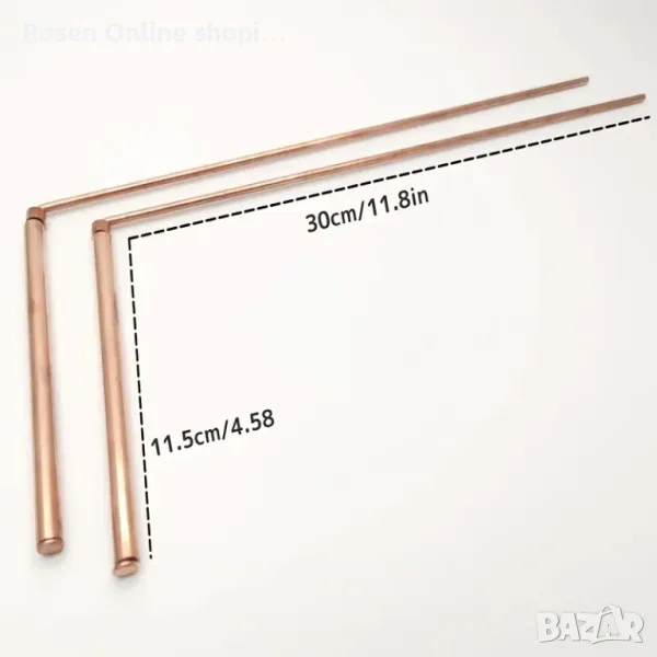 Качествени медни багети от чиста мед 99.99% за откриване на подземни води, ценни метали, съкровища,геоложки разломи,пещери,кухини и др. Цената за комплект от 2 броя багети е 20 евро