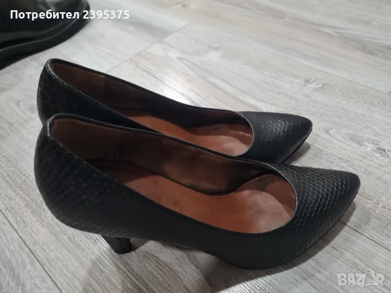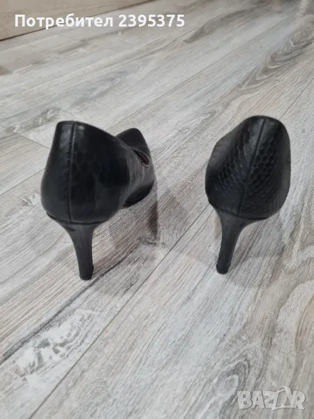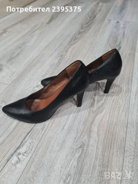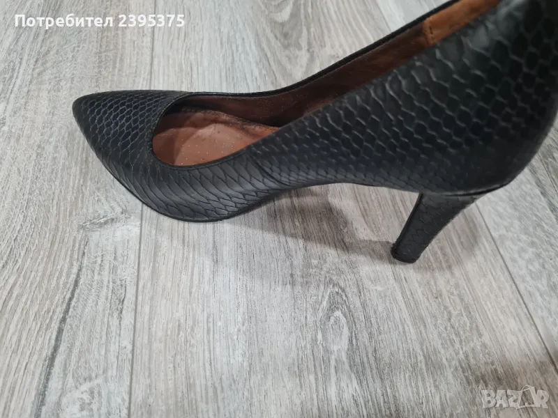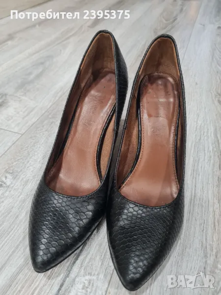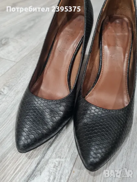 Нормални следи от употреба. Нямат нито драскотина. Оригинални. Естествена кожа, която имитира змийска. 8 см. ток. Стелка 23.5
