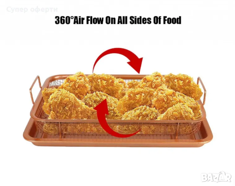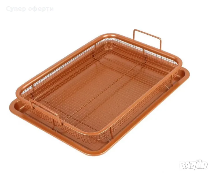 Комплект правоъгълна мрежеста кошница + тава от въглеродна стомана → Обява 48490872