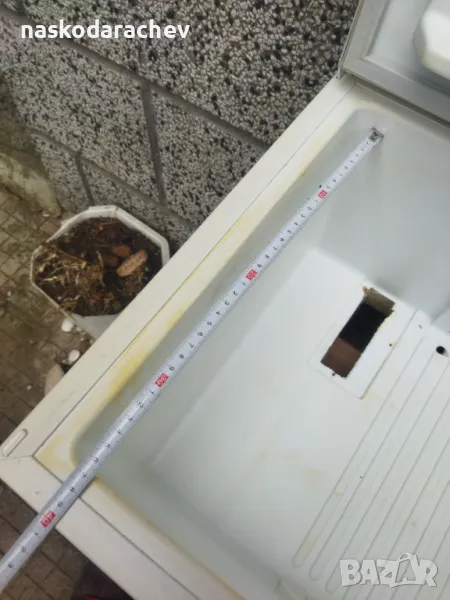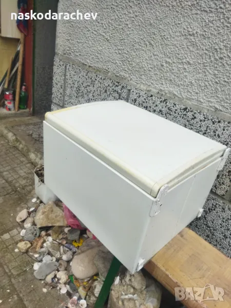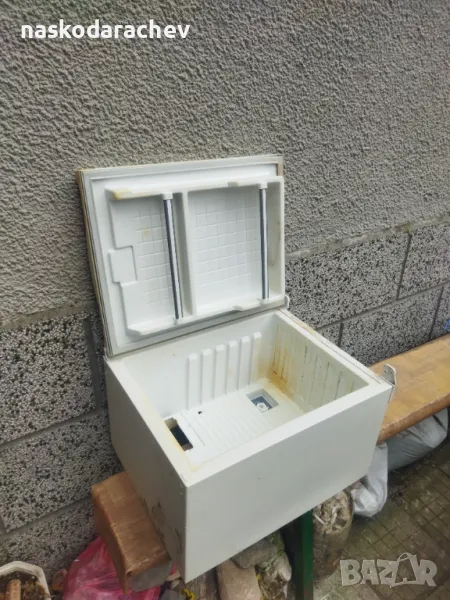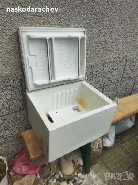 Малък хладилник с размери външно: 55 см * 43,5 см * 30 см (34 см с дебелината на вратата) подходящ за направата на инкубатор, вътре пространство с размери: 47,5 см * 36,5 см * 24 см. Цена - 50 лв.