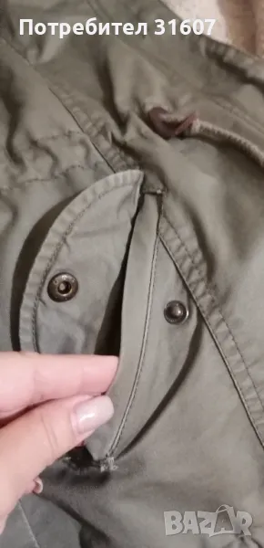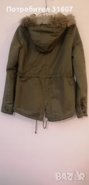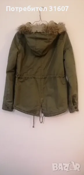 Дамско яке, тип канадска, в масленозелен цвят. Много топла, с качулка. В много добро състояние. Размер С/М.