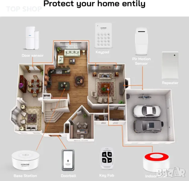 ❤ ПЪЛЕН КОНТРОЛ НА АЛАРМАТА - Дистанционно активирайте и дезактивирайте алармата AGSHome чрез приложение Smart Life, ключодържател или гласово управление (Работи с Alexa). В случай на спешност можете да натиснете бутона SOS на ключодържателя, за да поискате помощ.