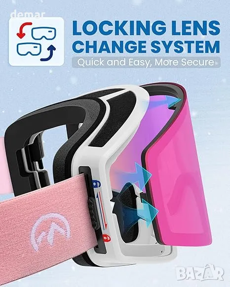 Ски очила OutdoorMaster Pulse, цилиндрични OTG без рамки със система за смяна на стъклата Lock & Fit
