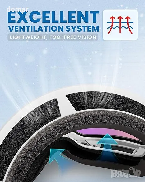 Тези очила за ски/сноуборд се отличават с дизайн без рамки със система за смяна на стъклата за широк изглед без изкривяване. Двуслойната цилиндрична леща предлага усъвършенствана технология против замъгляване, 100% UV400 защита и кристално ясна видимост. Проектирани за комфорт, те включват гъвкава TPU рамка с трислойна пяна и вентилация за дълготрайно носене. OTG дизайнът побира очила, докато регулируема каишка гарантира съвместимост с каска.