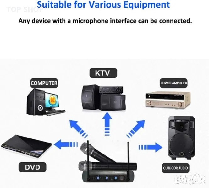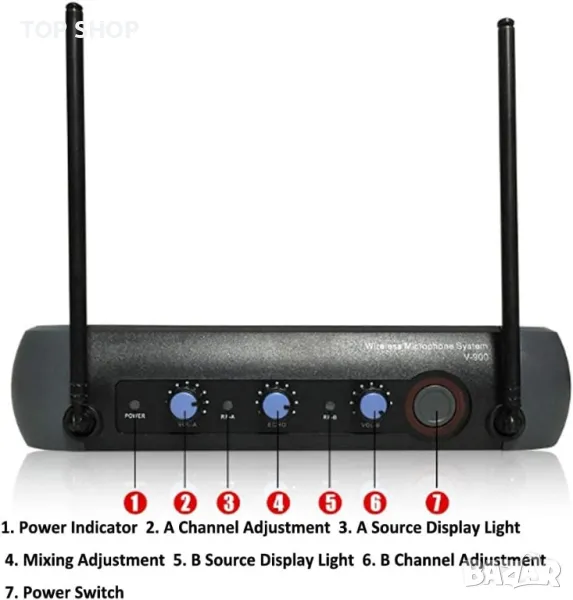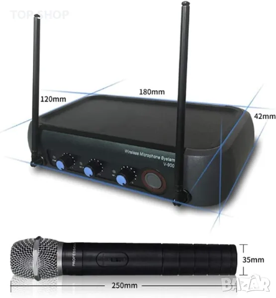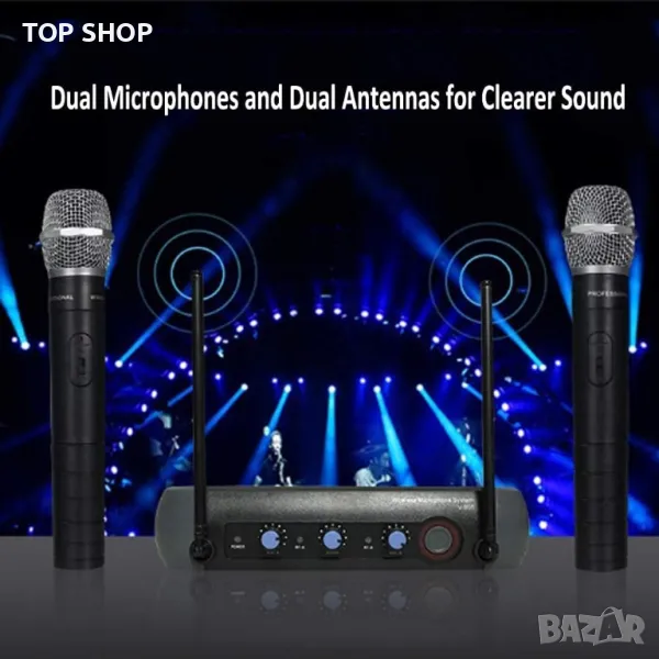двуканален vhf безжичен ръчен чифт микрофони, с интегриран ехо ефект, отлично съотношение сигнал/шум. независимо копче за контрол на звука за канал a и канал b. достигат до 40 метра в открити пространства. следваме изброяваме основните характеристики: