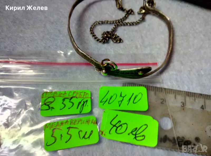 Пускам СЕРИЯ от майсторска ръчна изработка старинни и нови СРЕБЪРНИ БИЖУТА - брошки, медальони, камеи, пафти, гривни, ланци, колиета, някои са инкрустирани със скъпоценни или полускъпоценни камъни. Всичките са ТЕСТВАНИ ПРОФЕСИОНАЛНО върху лидийски камък с пробер - киселина за сребро, като особено по-старите, ръчно изработени и без маркировка които са, е заснето и резултата на камъка - яркочервеният цвят при натъркване и капване на киселината показва, че са от масивно СРЕБРО ВИСОКА ПРОБА. Има и накити от САЧАН /нископробна сребърна сплав, с която са работели старите майстори - куюмджии от периода на ВЪЗРАЖДАНЕТО и края на 19-ти век/, мед, бронз и благородна стомана с позлата или посребряване. Снимките ги ОНАГЛЕДЯВАТ! Имам НАД 27000 обяви в профила си - За ВСЕКИ по НЕЩО...! Изпращам по Еконт или Спиди с опция Преглед/Тест и отстъпка-транспорт.