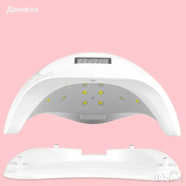 Елегантна и компактна UV LED лампа за нокти SUN5 с висока мощност-48W; Авто сензор за включване/изключване без натискане на клавиши; Полимеризира всички лакове, гелове, uv гелове и нетрайни лакове; Таймери за време 10s, 30s, 60s; Бутон за бавно сушене 99s;- ЦВЯТ: БЯЛ!