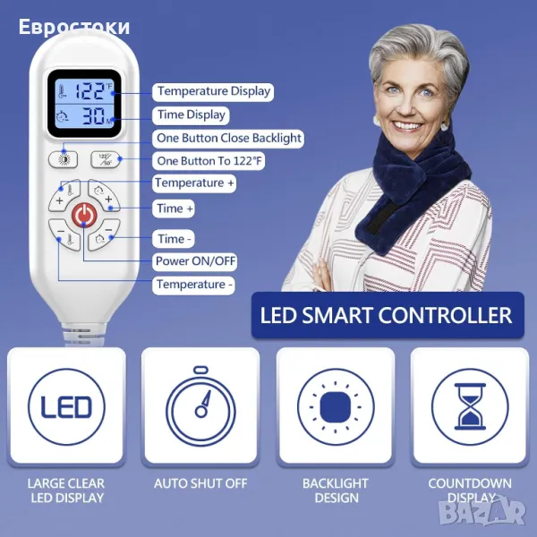 Нашата електрическа нагревателна подложка за врата е проектирана с цифров LDD контролер, който улеснява регулирането на времето и температурата на нагряване дори през нощта. Термоподложката е лека, можете да я носите със себе си на работа, във фитнеса или когато пътувате.