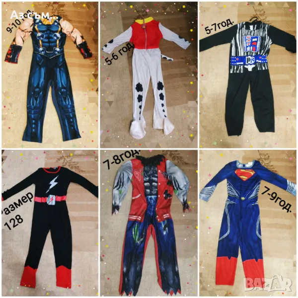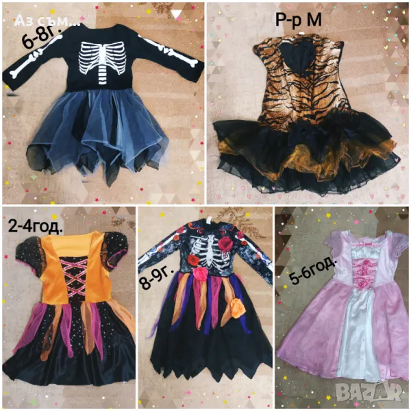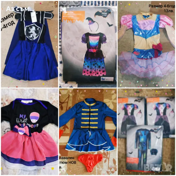 Хелоуин костюми нови, ползвани или обличани за фото сесия,от 3м до Л/М размер, подходящи за момиче или момче,цените са в зависимост от състоянието от 5лв до 25лв, качвам само част от тях ,при интерес на лично . Възможен е коментар по цената за повече броя