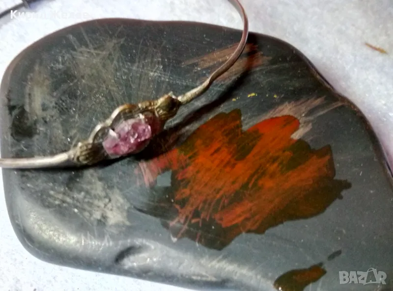 Пускам СЕРИЯ от майсторска ръчна изработка старинни и нови СРЕБЪРНИ БИЖУТА - брошки, медальони, камеи, пафти, гривни, ланци, колиета, някои са инкрустирани със скъпоценни или полускъпоценни камъни. Всичките са ТЕСТВАНИ ПРОФЕСИОНАЛНО върху лидийски камък с пробер - киселина за сребро, като особено по-старите, ръчно изработени и без маркировка които са, е заснето и резултата на камъка - яркочервеният цвят при натъркване и капване на киселината показва, че са от масивно СРЕБРО ВИСОКА ПРОБА. Има и накити от САЧАН /нископробна сребърна сплав, с която са работели старите майстори - куюмджии от периода на ВЪЗРАЖДАНЕТО и края на 19-ти век/, мед, бронз и благородна стомана с позлата или посребряване. Снимките ги ОНАГЛЕДЯВАТ! Имам НАД 27000 обяви в профила си - За ВСЕКИ по НЕЩО...! Изпращам по Еконт или Спиди с опция Преглед/Тест и отстъпка-транспорт.