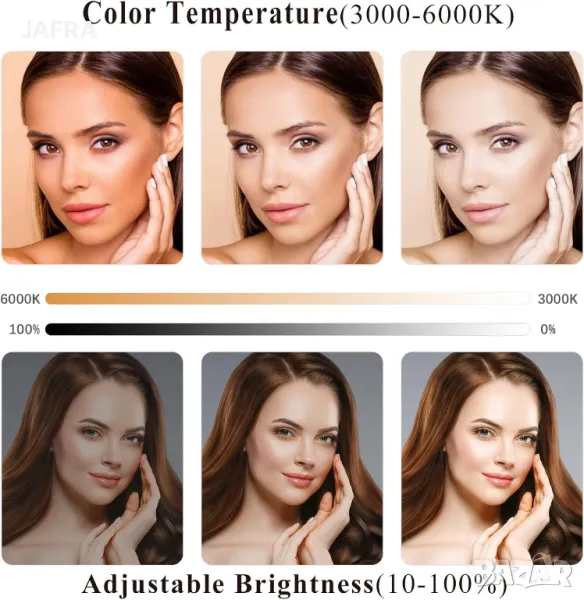 Изберете между топла, неутрална или студена светлина (3000K-6000K) според нуждите на работата. Яркостта също може да се регулира плавно за максимален комфорт.