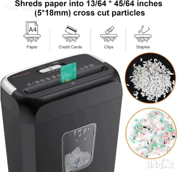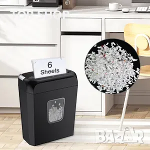 【Унищожител за хартия и кредитни карти】 Домашен шредер за хартия Bonsaii, раздробява до 6 листа хартия наведнъж (максимум 36 листа за една минута) на малки парчета с размери 13/64 x 45/64 инча (5x18 mm), също унищожава документи /телбод/кредитни карти/нежелана поща без пластмасово фолио и др.