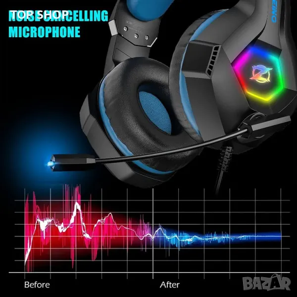 Микрофон с шумопотискане: Микрофонът със слушалки за игри използва най-новата технология за шумопотискане, за да премахне шума и да предаде висококачествена комуникация. Микрофонът може да се върти на 120° и 360° и записва шумове с висока чувствителност, което ви позволява да изпращате или получавате ясни съобщения по време на игра без забавяне.