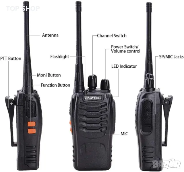 【Професионална уоки токи】: Кристално чисто гласово предаване и всяко радио има слушалка в стил с една слушалка, вграден микрофон и DCS/CTCSS функция.