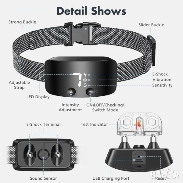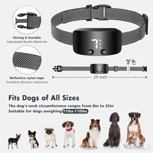 Нашийник за обучение против лай със 7 регулируеми чувствителност и интензитет звуков NBJU