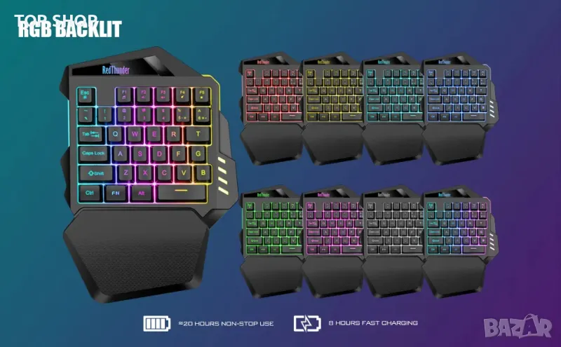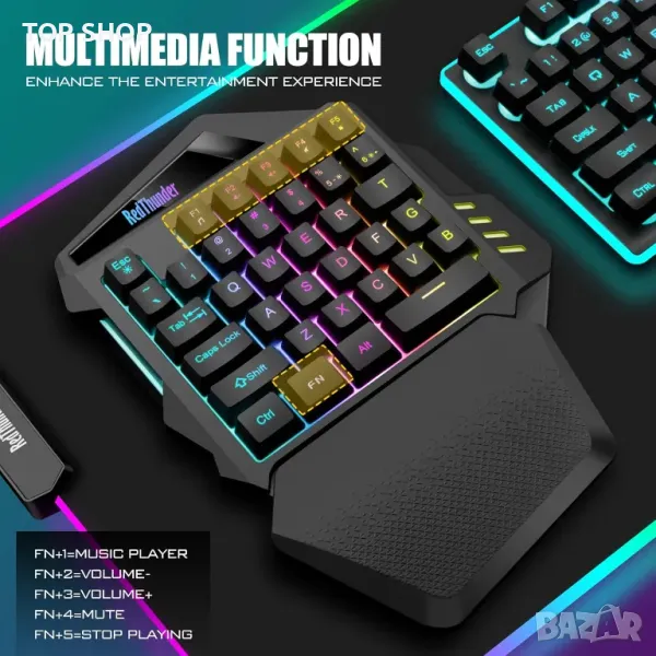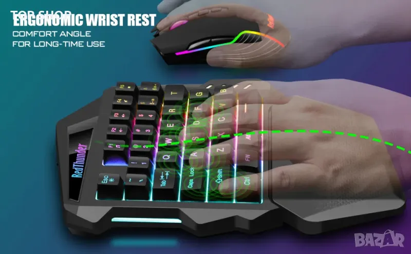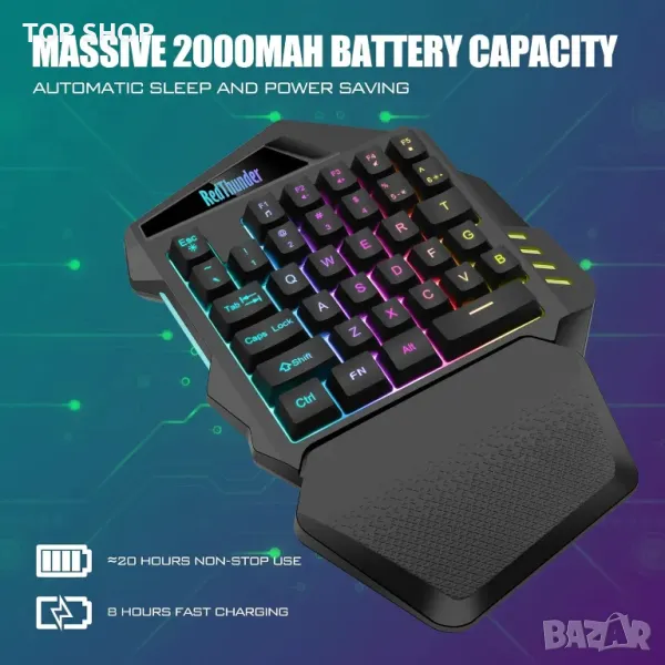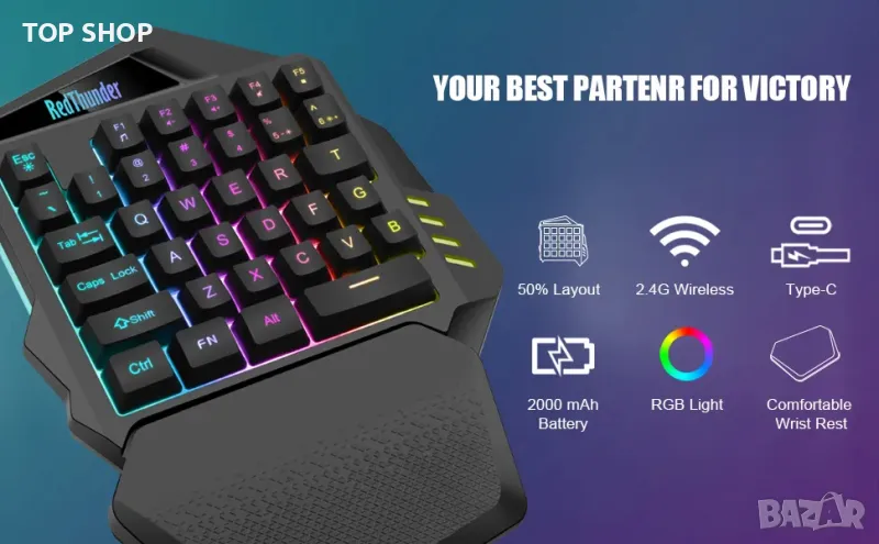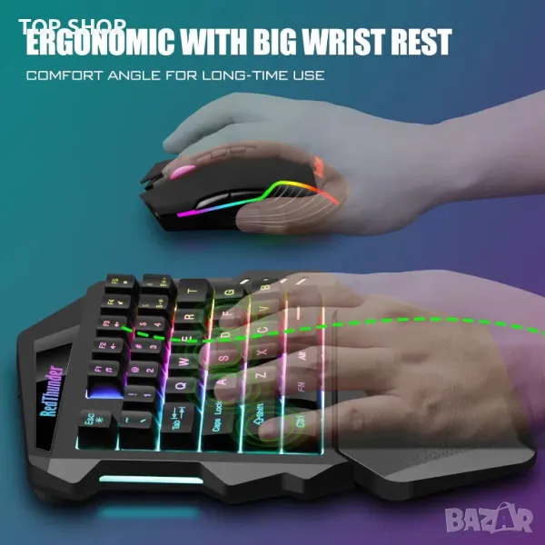Безжична клавиатура за игри RedThunder с една ръка, мини клавиатура за игри с 2,4 Ghz RGB подсветка, акумулаторна 2000 mAh батерия за компютърни геймъри
